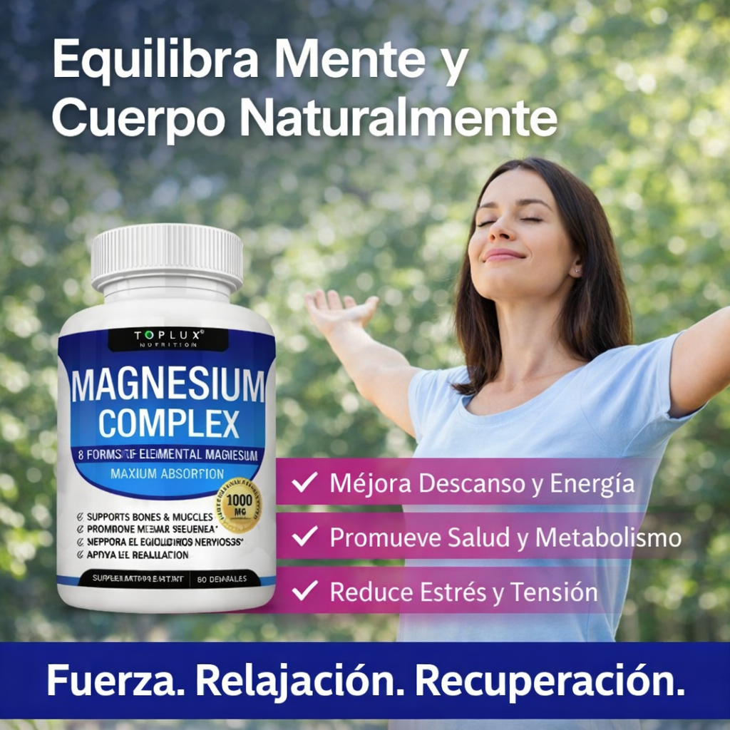 Un complejo de magnesio puro y de alta calidad elaborado con 8 formas esenciales, diseñado para apoyar su cuerpo de manera segura y efectiva todos los días.